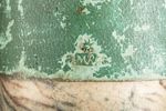 Material / Technik: Metall: Eisen. Holz mit Lackfassung. Papier, farbig gestaltet. Glas. Pergament oder Leder.