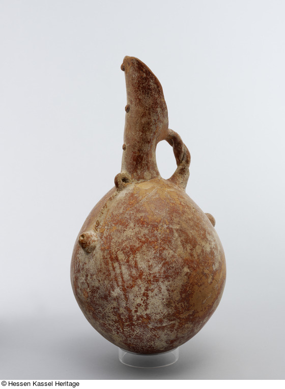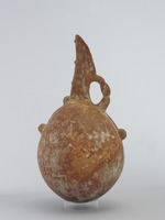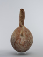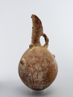 Hellbrauner bis gelblicher Ton, roter Schlicker-Überzug, geglättet und poliert. Oberläche teilweise dünn versintert, rote polierte Schicht wenig abgerieben