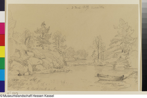 3 Juni. 1839. Trollhätta (mit Graphit); Signatur: unten links: a aschenbach (mit Bleistift);