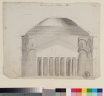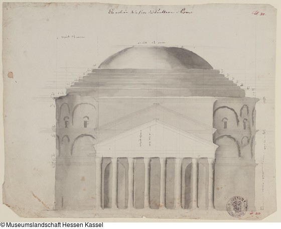 Beschriftungen: oben mittig: "Elevation de la face du Pantheon à Rome" (mit Feder in Braun);